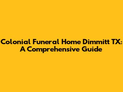 Are you looking for information about Colonial Funeral Home in Dimmitt, TX? Planning a funeral or memorial service can be an incredibly emotional and challenging time. It's often difficult to know where to begin, especially when you're dealing with grief and loss. This comprehensive guide aims to provide you with everything you need to know about Colonial Funeral Home in Dimmitt, TX, from the services they offer to how to contact them and what to expect during this difficult period. We'll delve into the history, the facilities, the staff, and the various options available to help you create a meaningful tribute for your loved one. Understanding the process and having access to the right information can make a significant difference during this time of mourning. It helps to alleviate some of the stress and allows you to focus on honoring the life of the person you've lost. This guide is designed to be a resource for anyone needing assistance with funeral arrangements in Dimmitt and surrounding areas. This guide ensures that you are well-informed and prepared, whether you are pre-planning or in immediate need of their services. We aim to equip you with the knowledge necessary to navigate the complexities of funeral planning with grace and dignity.