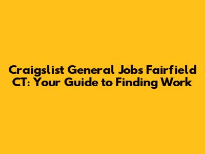 Craigslist General Jobs In Fairfield, CT: Your Job Search Guide