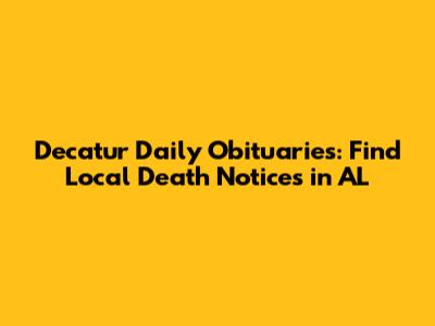 The Decatur Daily is a primary source for local news and obituaries in Decatur, Alabama. By consistently updating their online platform, they ensure that the community has access to the latest information regarding funeral services, memorial events, and tributes to those who have passed away. Checking the Decatur Daily should be your first step in finding a specific obituary or staying informed about recent deaths in the area. In addition to providing essential details about the deceased's life, the Decatur Daily's obituaries often include information about memorial services, charitable donations in lieu of flowers, and opportunities to leave condolences for the family. This makes it a comprehensive resource for those seeking to pay their respects and support grieving loved ones. Always ensure to double-check the information with other sources, such as funeral home websites, to confirm details and gain a more complete understanding of the individual's life and legacy. The Decatur Daily acts as a cornerstone for community connection during times of loss, providing a respectful and informative platform for sharing memories and honoring the lives of those who have shaped Decatur, Alabama.