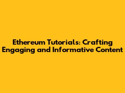 Ethereum Tutorials: Crafting Engaging And Informative Content