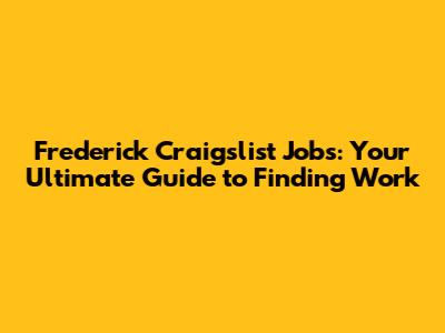 Frederick Craigslist Jobs: Your Ultimate Guide