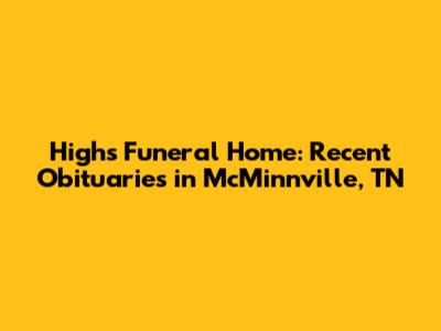 \nLosing a loved one is an incredibly difficult experience. During these challenging times, finding the right resources and information can provide some comfort and support. If you're looking for obituaries from Highs Funeral Home in McMinnville, Tennessee, you've come to the right place. This article will guide you through how to find recent obituaries, understand the services offered by Highs Funeral Home, and provide resources for grieving families.