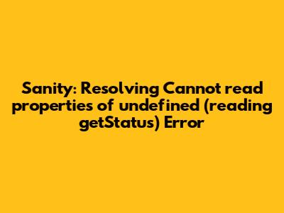 The TypeError: Cannot read properties of undefined (reading 'getStatus') error can be a challenging issue to resolve, but with a systematic approach to diagnosis and troubleshooting, you can effectively identify and fix the root cause. By understanding the error, implementing the appropriate solutions, and adopting proactive measures, you can minimize the risk of encountering similar errors in the future and ensure the stability and reliability of your Sanity-powered applications.