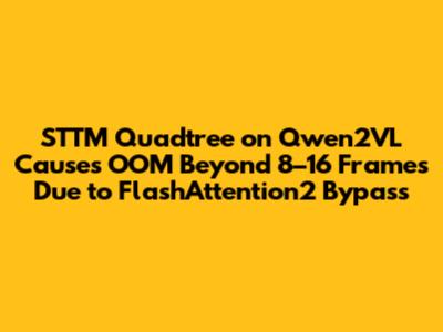 This document addresses an issue encountered while using the STTM Quadtree implementation with Qwen2VL, specifically regarding out-of-memory (OOM) errors when processing a larger number of frames. The problem arises because the current implementation appears to bypass FlashAttention2, leading to increased memory consumption and limiting the number of frames that can be processed. This article delves into the details of the problem, provides context, and raises questions about how the original experiments managed to handle a larger number of frames.