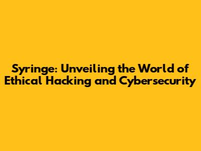 Syringe: Your Guide To Ethical Hacking And Security